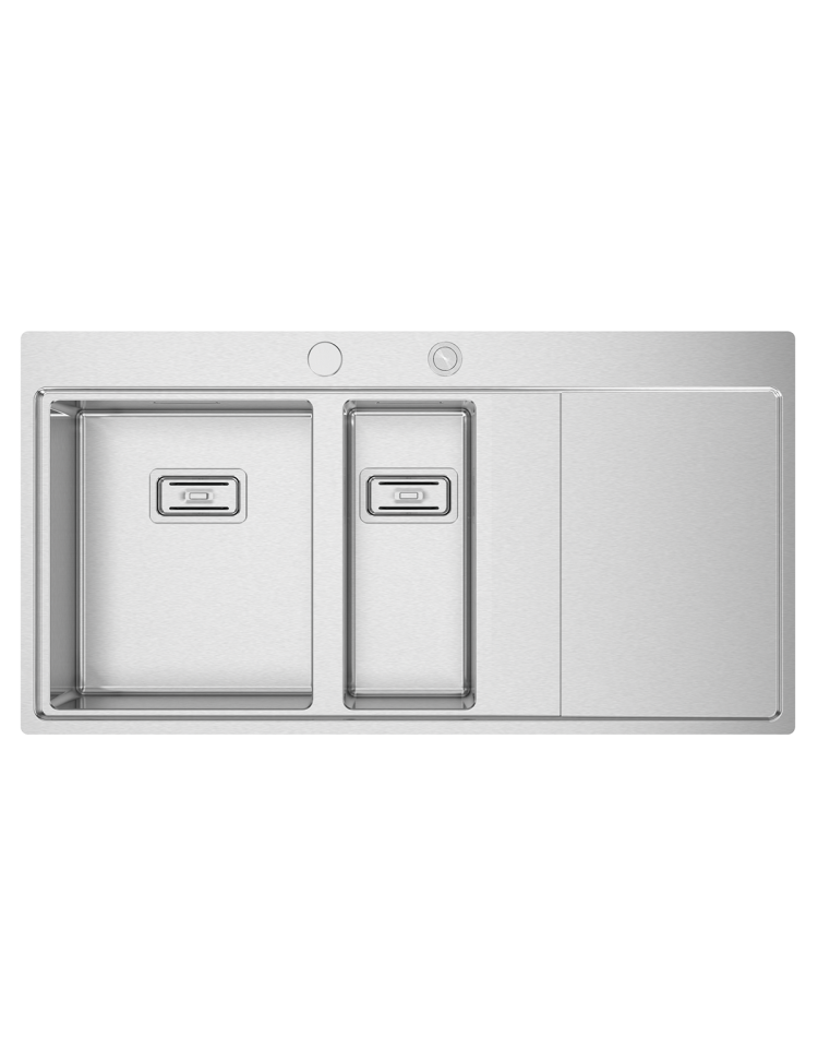 Lava-louça RODI de cuba e meia, em aço inox escovado, com 12mm de raio. O design minimalista desta linha permite a utilização de diversos acessórios que aumentam a sua funcionalidade.