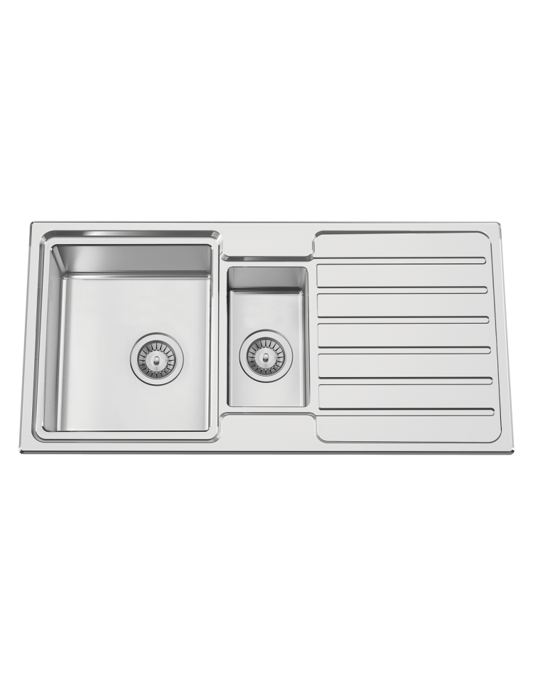 Lava-louça RODI reversível com cuba e meia de 12mm de raio, disponível para aplicação de encastrar. Possui um prático anti inundação FIRST, na zona superior central do Lava-louça RODI, que oferece uma forma inovadora de escoar líquidos.