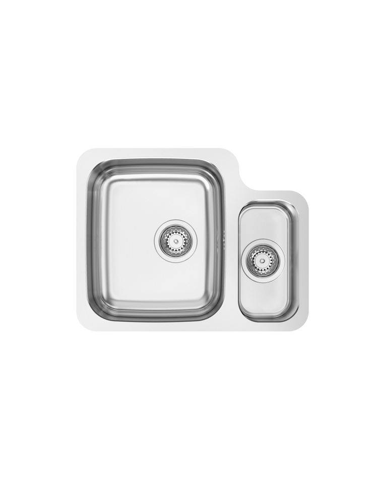 Lava-louça RODI 2 cubas de linhas retas e design minimalista, com 12mm de raio e possibilidade de integração de válvula redonda ou retangular.