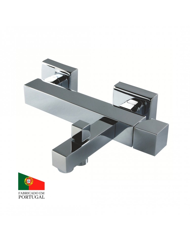 Monocomando para banheira, feito em latão cromado, com acessórios de suporte, ligação e chuveiro de mão. Fabrico Nacional. Garantia de 5 anos.