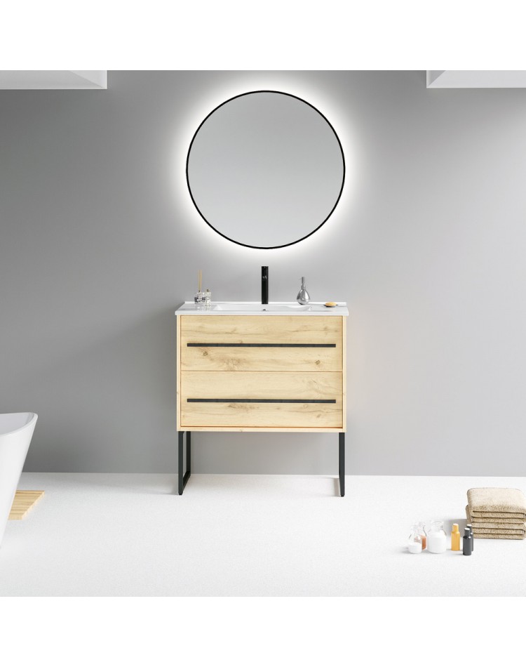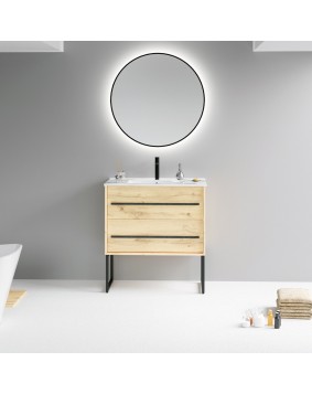 Pé em alumínio, disponível nas cores Cromo e Acetinado, com um aspeto minimal que se adequa aos diferentes estilos de decoração e espaços da sua casa de banho.