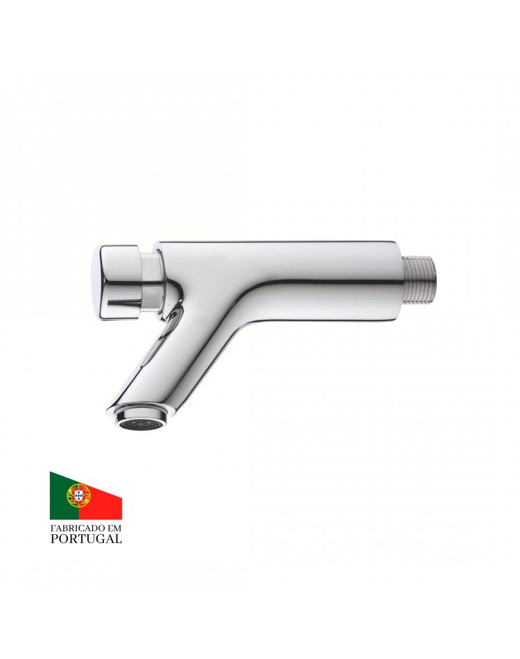 Torneira temporizada, feita em latão cromado. Fabrico Nacional. Garantia de 5 anos.