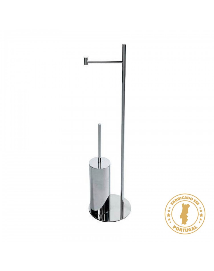 Toalheiro de pé com uma barra cilíndrica, com porta-piaçaba em cromado.